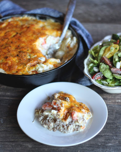 I'm sure many of you grew up eating some version of a hamburger potato casserole. I didn't grow up eating many casseroles, but this is one I remember my Mom making.